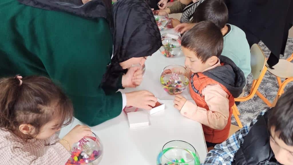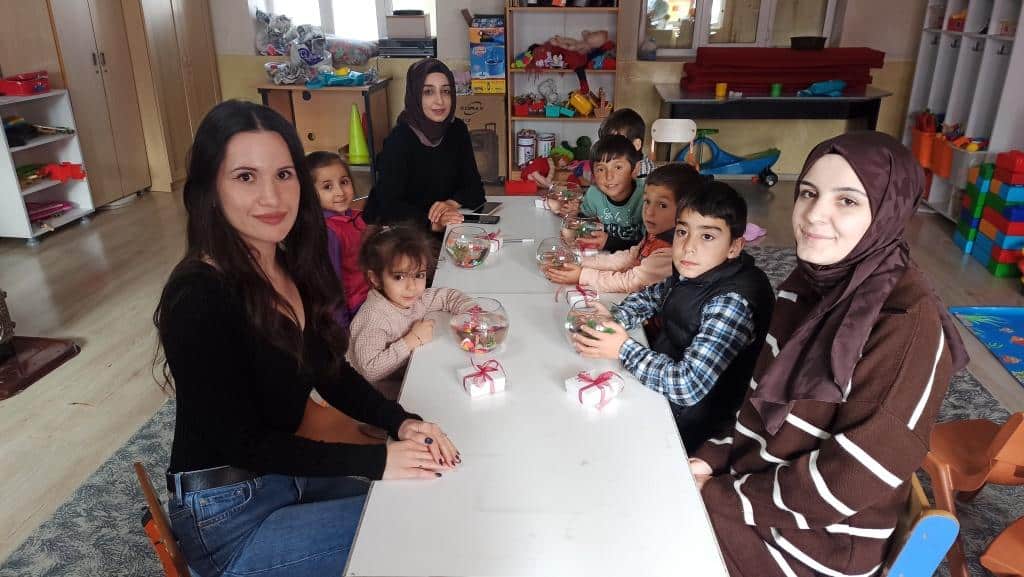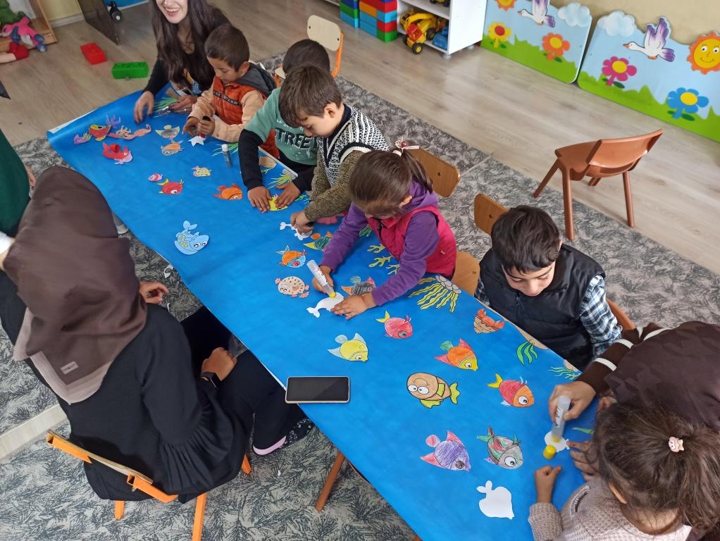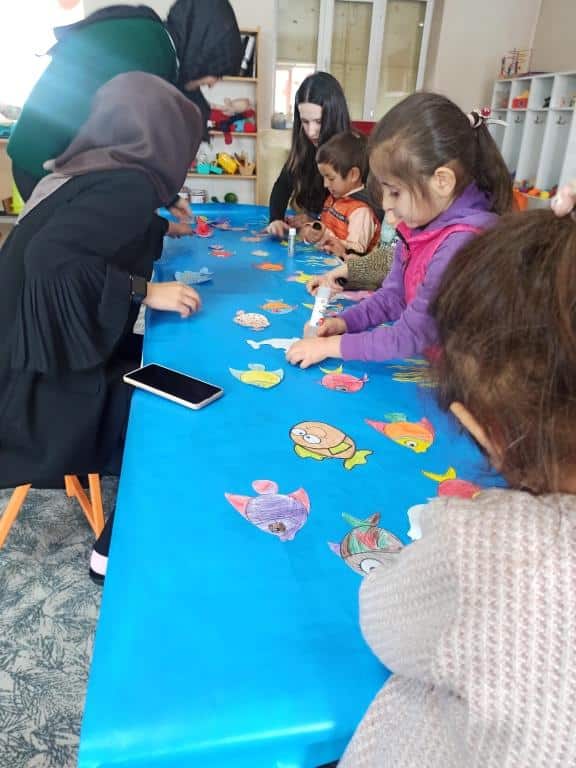 Atatürk Üniversitesi Halkla İlişkiler bölumü son son sinif ogrencileri sosyal sorumluluk projesi kapsaminda okulumuza geldiler. Ogrencilere hayvan sevgisi ve sorumluluk kazandirmak amaciyla etkinlikler yaptilar.Cocuklarla birlikte once akvaryum posteri hazirladilar. Daha sonra yanlarinda getirdikleri fanuslari susleyip baliklari icine koydular ve cocuklara hediye ettiler. Atatürk Üniversitesi ogrencilerine okulumuza katkilarindan dolayi tesekkur ediyoruz.